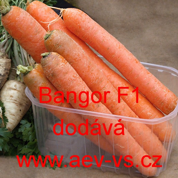 Mrkev obecná (Daucus carota ssp. Sativus) Bangor F1 je poloraná válcovitá praskání odolná mrkev obecná vhodná i na dlouhodobé skladování.
